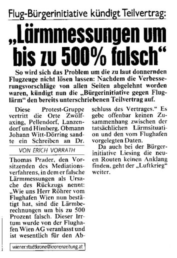 16.06.2006 Krone: Fluglärm auch in Meidling