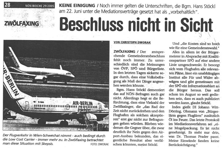 Gemeinderatsbeschluß in Zwölfaxing nicht in Sicht
